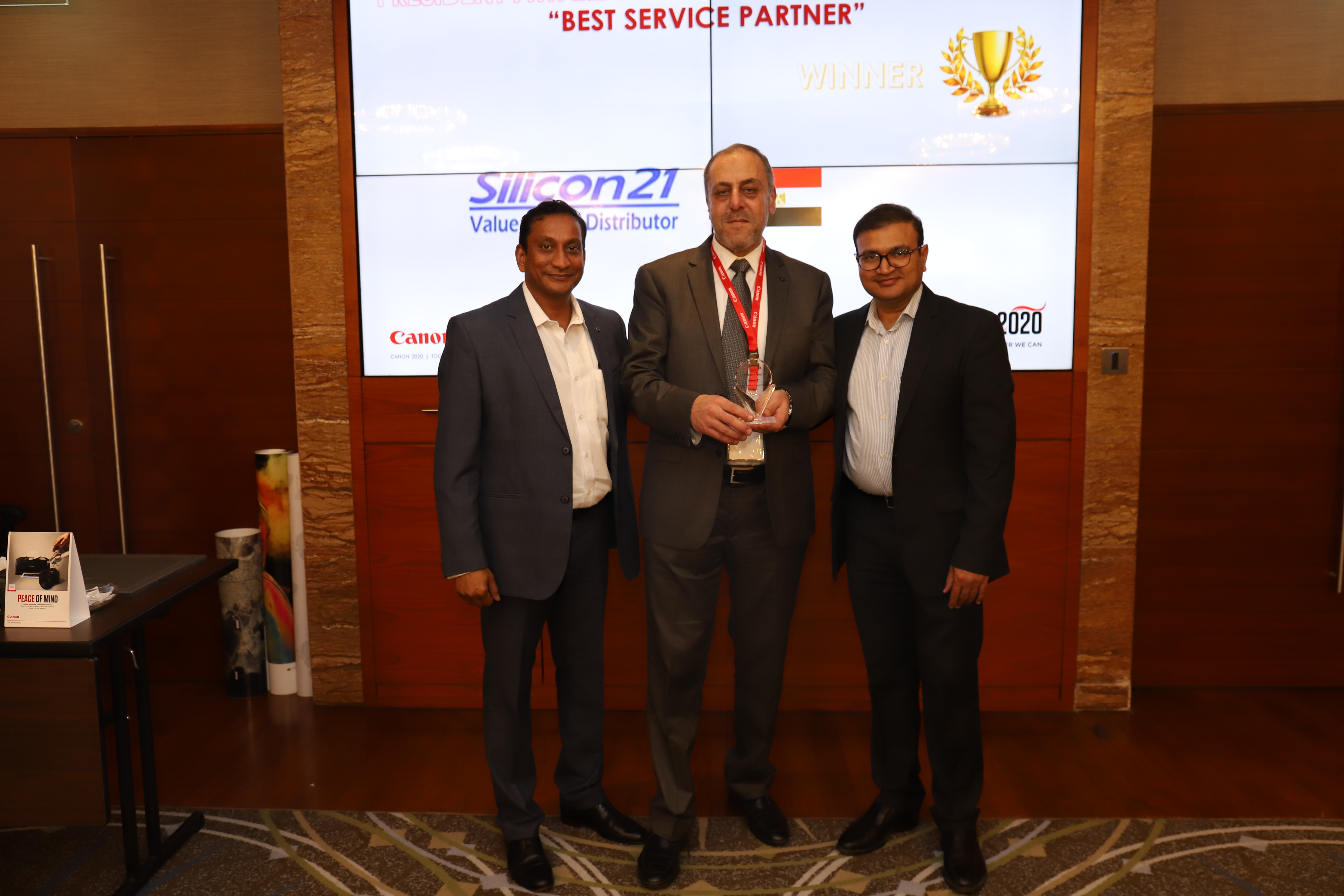 (From the left): Anil Nambiar – Service Manager - Canon Central & North Africa, Canon Partner : Mr.Nasser.A.Nasser – Service Director Silicon 21 , winners for the Best Service Partner – Mr. Somesh Adukia - Managing Director , Canon Central & North Africa (Source: Canon Central and North Africa (CCNA) | 5 years ago) |